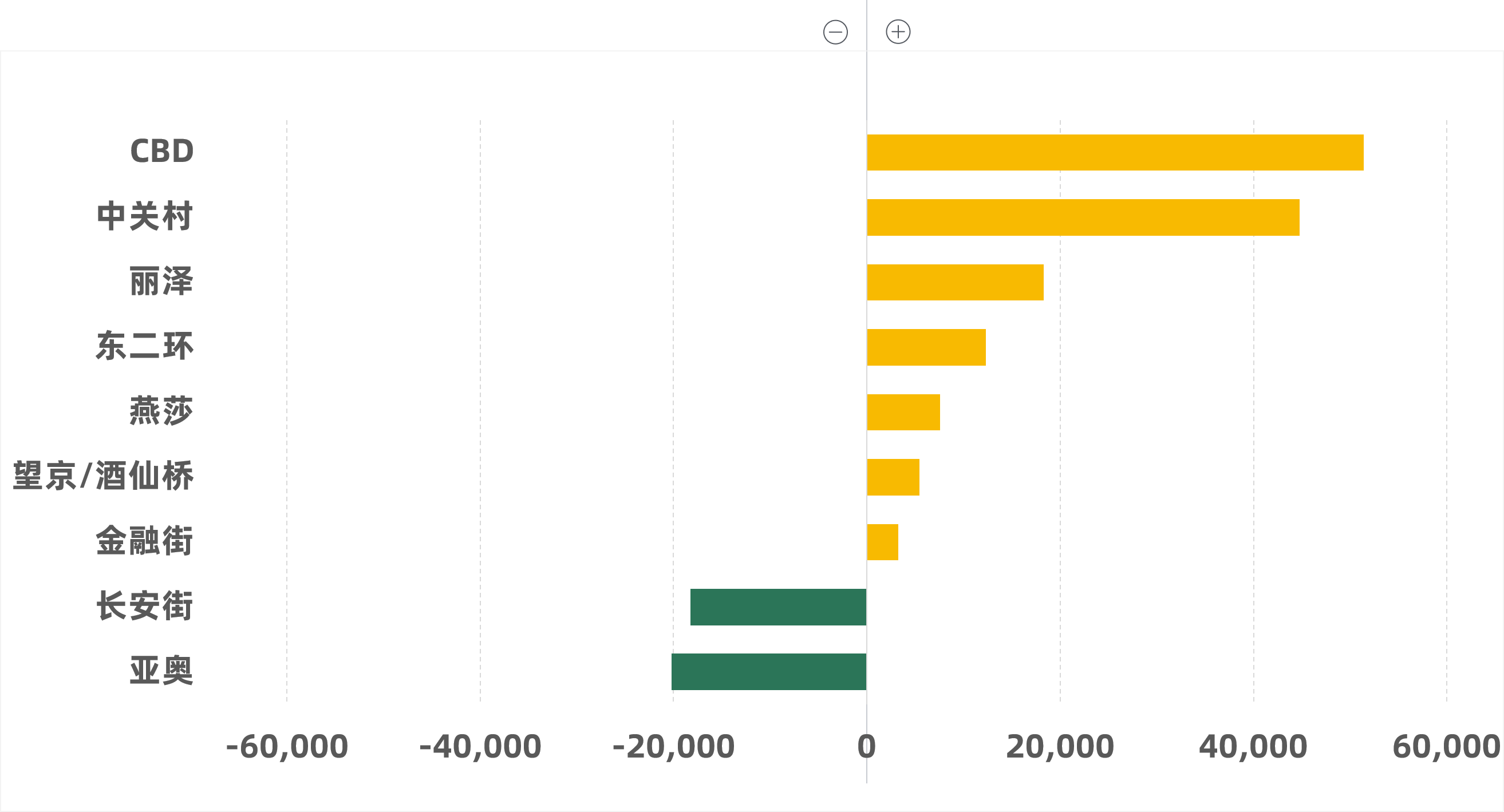 按樓宇等級成交面積(-/+)環比變化